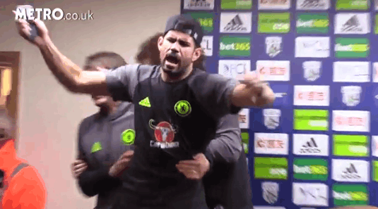 Kedua pemain Chelsea tersebut tidak bisa menahan kegembiraannya atas pencapaiinnya menjuarai Liga Primer Inggris musim ini. Luis dan Costa masuk secara tiba-tiba di saat Antonio Conte tengah mengadakan konfrensi pers dihadapan para wartawan.